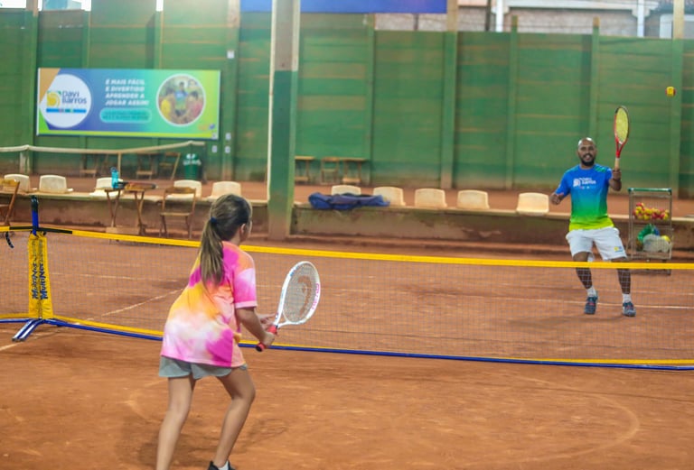 O Projeto conta com a metodologia nacionalmente reconhecida da Davi Barros Tennis no desenvolvimento das crianças e adolescentes na prática esportiva